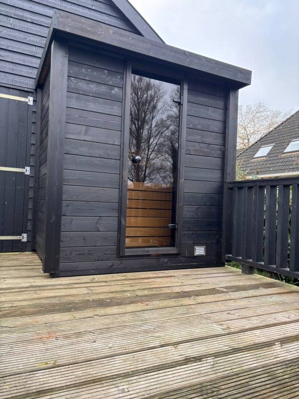 OLUFSEN buiten sauna Fins Grenen hout black serie
