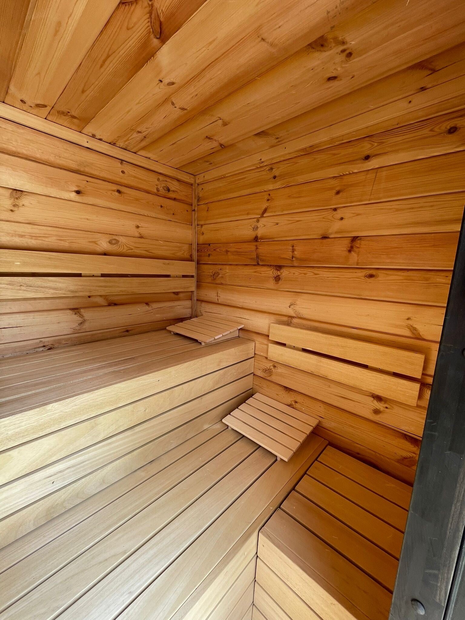 Onze Olufsen buiten sauna’s van volledig Nederlands fabrikaat worden vervaardigd uit 42mm massief Fins grenen hout, opgebouwd met een dubbele veer- en groefverbinding. Het solide gleufpalen systeem zorgt voor een strakke, robuuste uitstraling.