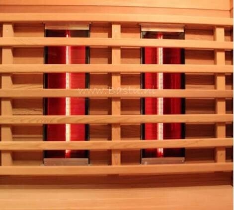 Dit model is verkrijgbaar in hemlock en Canadese Red Cedar. Voor de standaardprijs krijgt u de hemlock uitvoering, voor de Red Cedar uitvoering wordt een meerprijs gevraagd. Voordelen van Red Cedar: relflecteerd alle straling zodat alles in de cabine blijft, werkt niet, ruikt heerlijk en heeft van nature een anti-bacteriele werking.