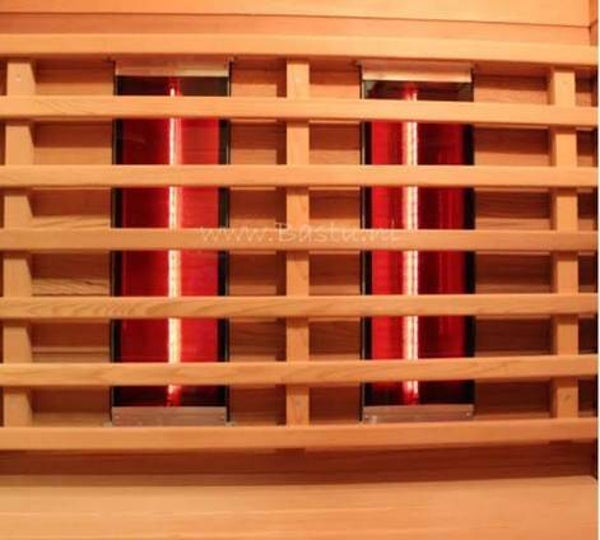 Dit model is verkrijgbaar in hemlock en Canadese Red Cedar. Voor de standaardprijs krijgt u de hemlock uitvoering, voor de Red Cedar uitvoering wordt een meerprijs gevraagd. Voordelen van Red Cedar: relflecteerd alle straling zodat alles in de cabine blijft, werkt niet, ruikt heerlijk en heeft van nature een anti-bacteriele werking.