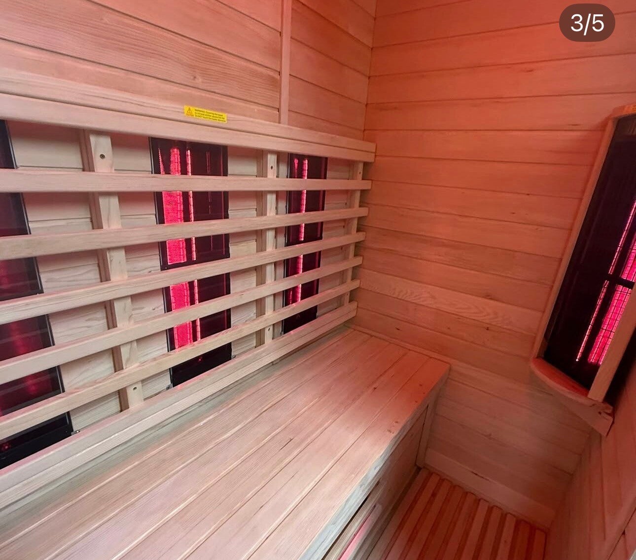 Dit model is verkrijgbaar in hemlock en Canadese Red Cedar. Voor de standaardprijs krijgt u de hemlock uitvoering, voor de Red Cedar uitvoering wordt een meerprijs gevraagd. Voordelen van Red Cedar: relflecteerd alle straling zodat alles in de cabine blijft, werkt niet, ruikt heerlijk en heeft van nature een anti-bacteriele werking.